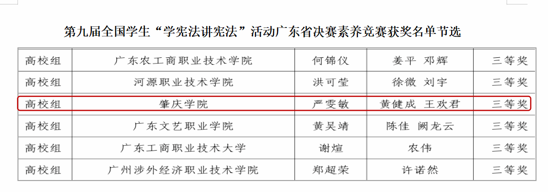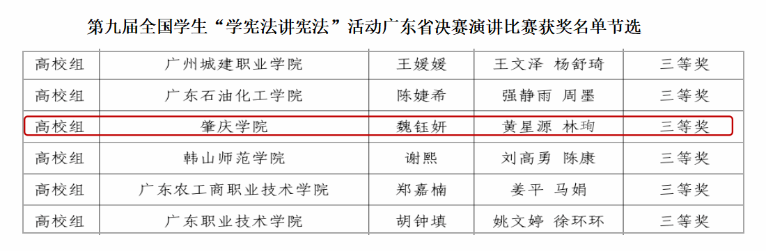本网讯 为全面学习贯彻党的二十大精神,深入学习贯彻习近平法治思想,推动青少年宪法宣传教育常态化长效化,在省教育厅举办的第九届全省学生“学宪法 讲宪法”活动中,437必赢会员中心魏钰妍同学获得演讲比赛高校组三等奖,严雯敏同学获得素养竞赛高校组三等奖。